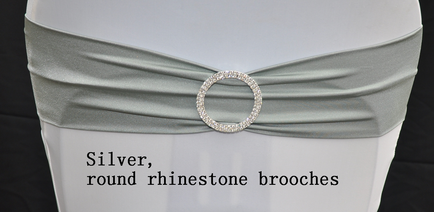 Silver Spandex Bands With Round Rhinestone Brooches